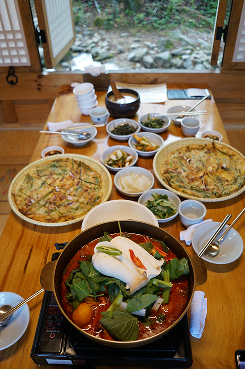 계절마다 느낌이 참 다른데. 그래서인가 와도와도 좋은 낙선재가을이어라♪별채 옆으로는 이렇게 물도 흐르고별채에 자리잡고 앉아 풍경 감상자연속에 자리잡아 더할나위 없지 않은가.거기에 맛나는 닭볶음탕과 파전과 동동주 캬~_~ 백숙은 이미 여러번 먹어봐서 오늘은 볶음탕으로 (..) 양념이 끝내줘요<-푸짐한 한냄비. 토종닭을 비롯한 버섯,감사,무,깻잎 등등 야채 한가득심지어 반찬도 맛남. 요즘은 이렇게 한식 반찬 먹을 수 있는데가 점점 줄고있는게 안타까울뿐내사랑 파전. 낙선재의 감자전 파전 다 먹어봤지만. 이 파전을 따라올자 누구더냐!푹~~ 끓여서 파전과 함께 냠냠. 국물맛이 끝내줘요 ㅎㅎ