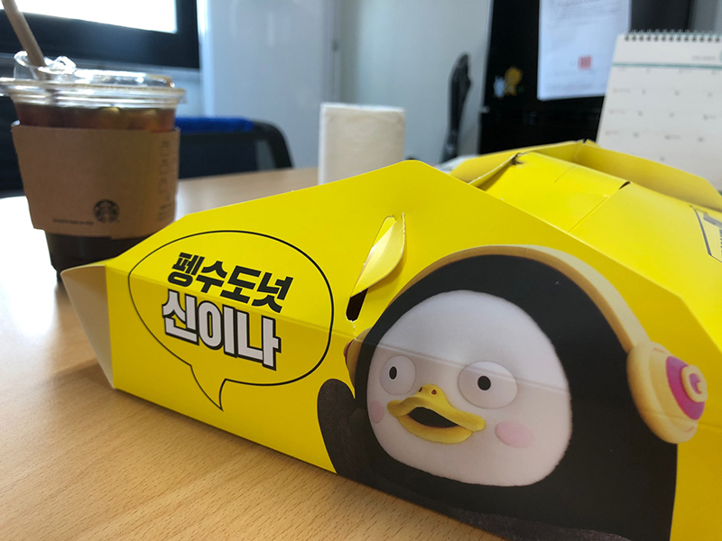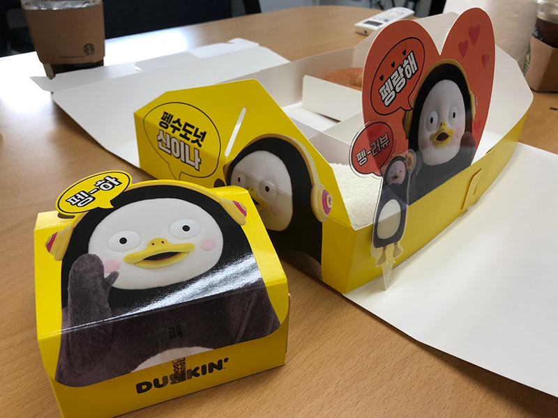 펭수 콜라보, 이벵들이 쏟아져나오는 요즘. 이제는 너무 과도한 노출에 감당하기 어려울 지경이 되어버린터라, 왠만하면 아무리 우리 펭수더라도 가능하면 패스하도록 자제하고 있는 상황이다. 그런데 이와중에 던킨과 펭수 콜라보라니-_- 사실 던킨은 그리 좋아하지 않고, 펭수와 콜라보한 먹거리는 아예 관심도 안주고 있었는데, 지난주 넘나 우울했던 금요일.. 결국 해피오더로 펭수세트 주문(...)