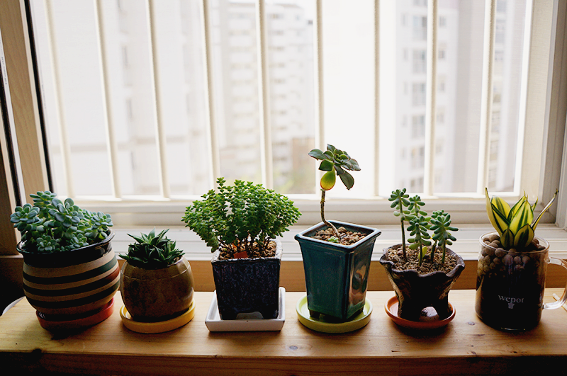 날 좋은 일요일. 집 싸악 치우고 창가에 앉아 우리 다육이들이랑 놀아주기