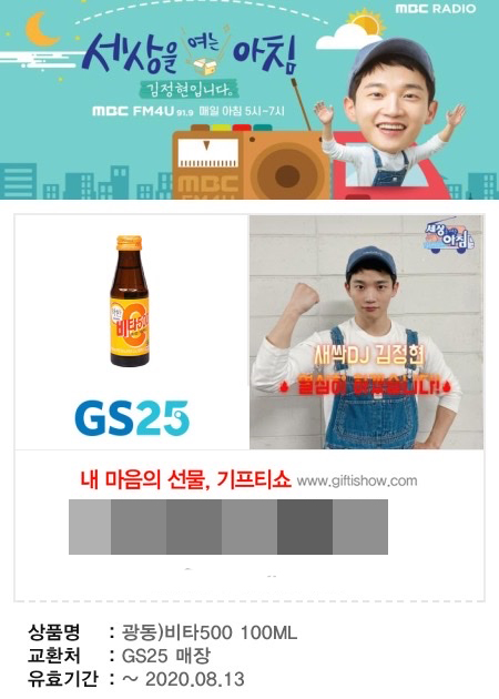 사연과 신청곡이 방송을 타고 비타민 음료 선물 받았음-_-v 잘 마실게요 쩡디.